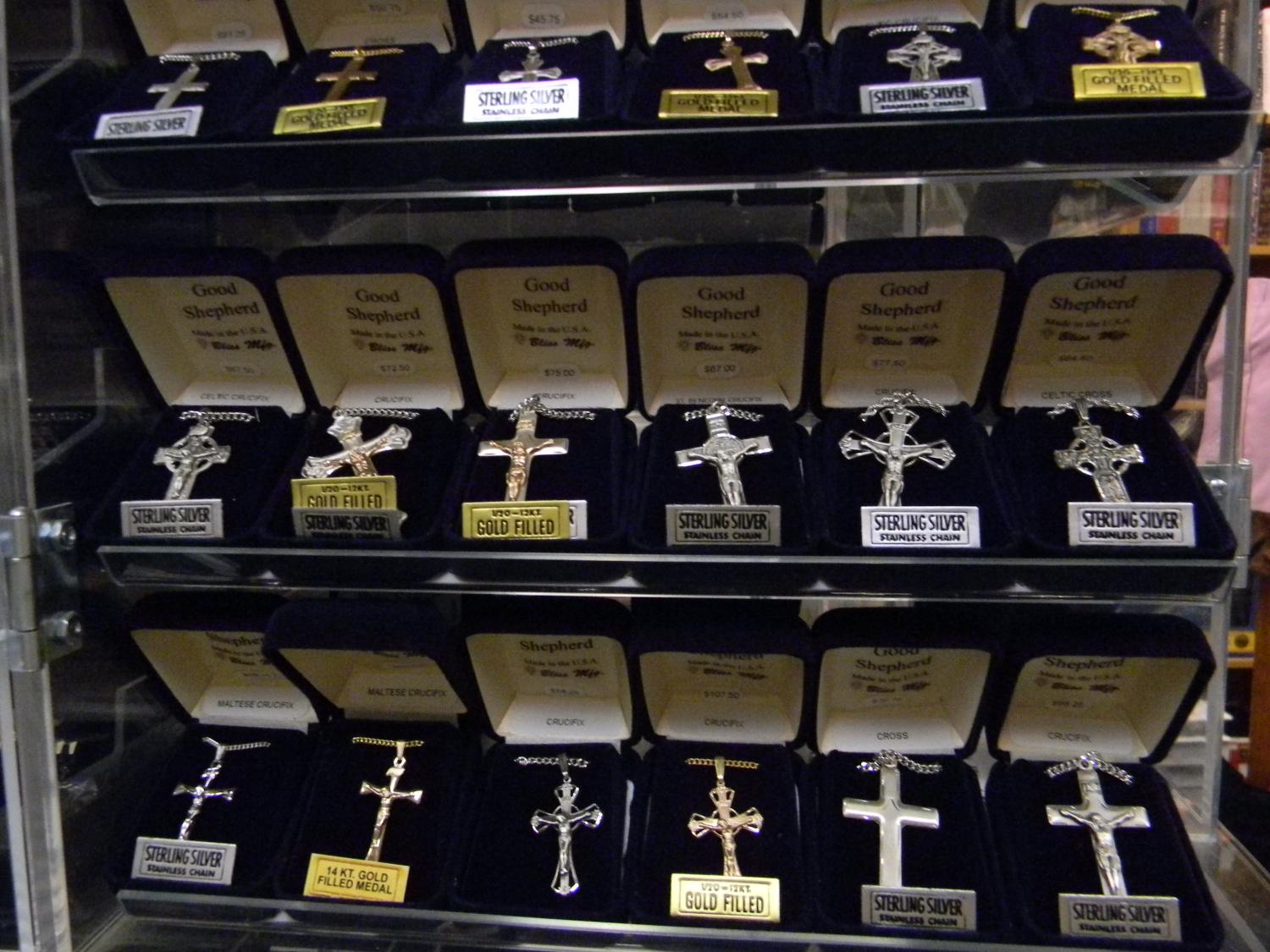 We have Saint cards, books, statues, bracelets, pictures, ect.